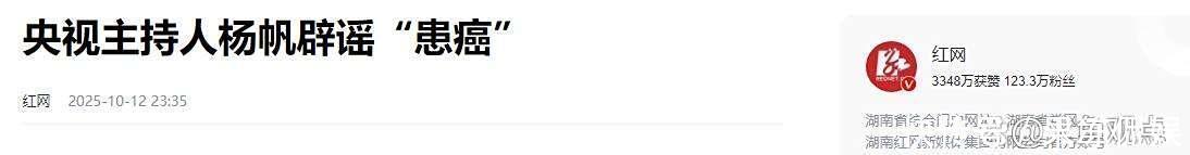 【2】红网2025-10-12《央视主持人杨帆辟谣“患癌”》